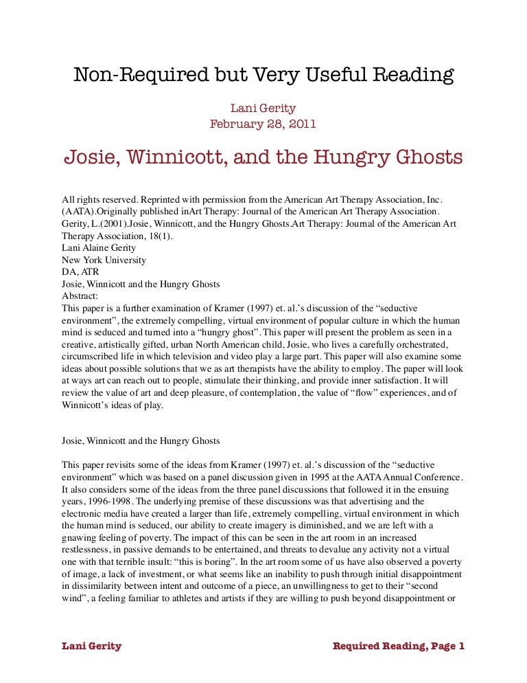 · Art therapy involves using art to facilitate discussion with an art psychotherapist or therapist, using art materials that can help express thoughts and feelings. It also can provide another way of communicating when it is hard to talk. There is no need to be good at art; the aim is not to improve your skills First of all Art Therapy is a form of psychotherapy. In psychotherapy there is an exploration of feelings and concerns in nonverbal and verbal exercises that use simple visual art materials. Art therapy focuses on the creative process for a person instead of what they are able to produce · “Art therapy is a form of therapy in making of visual images (paintings, drawings, models etc.) in the presences of a qualified art therapist contributes towards externalization of thoughts and feelings which may otherwise remain unexpressed” (Walter & Gilory, ). My vision of Art Therapy was very vague